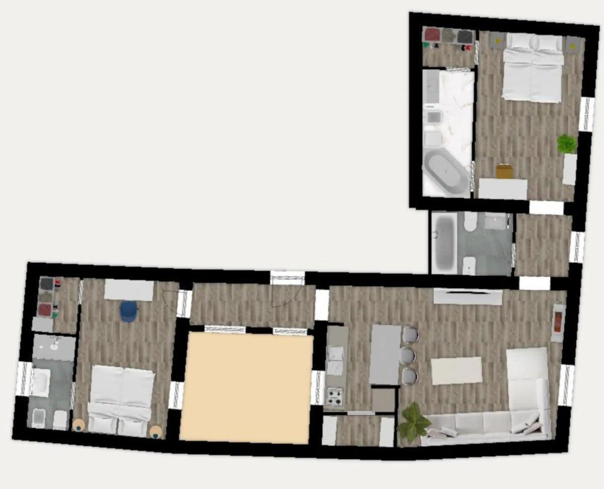 3 habitaciones espaciosas: dos con cama doble (King size 180x200) y una con dos camas individuales (90x200 que se pueden juntar para formar una cama doble), ideal para hospedar hasta 6 personas.