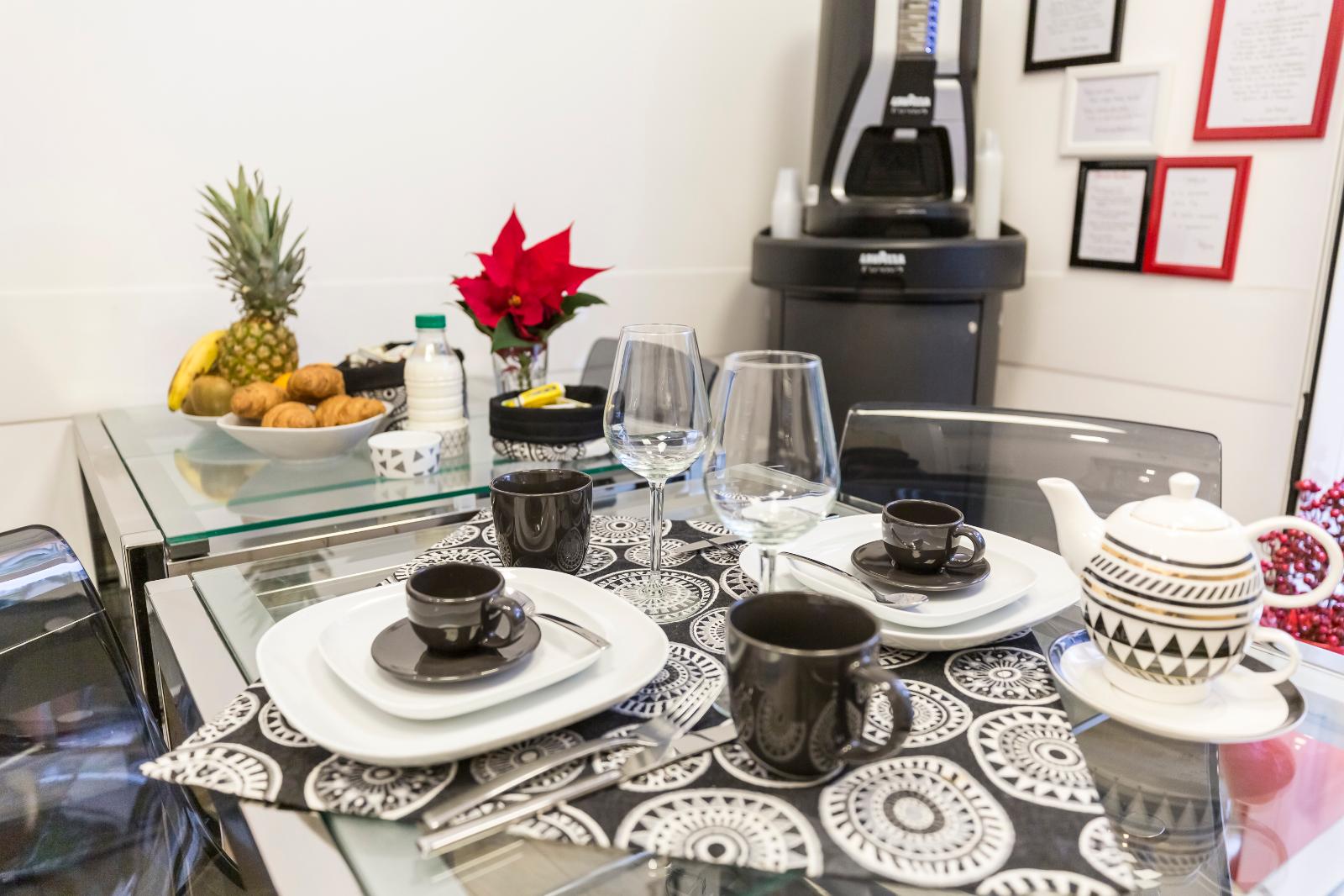 Questa camera fa parte di una appartamento di 100 metri quadri appena ristrutturato con un grande terrazzo. Dispone anche di una area comune con una zona pranzo con angolo cottura completamente attrezzato, una terrazza con tavolini e sedie, una sala computer con stampante, lavatrice e asciugatrice. Quest'area è condivisa fra le tre camere e con gli ospiti degli appartamenti ai piani superiori. Le camere sono finemente arredate in maniera esclusiva con arredi disegnati dall'architetto inglese Donald Baugh.