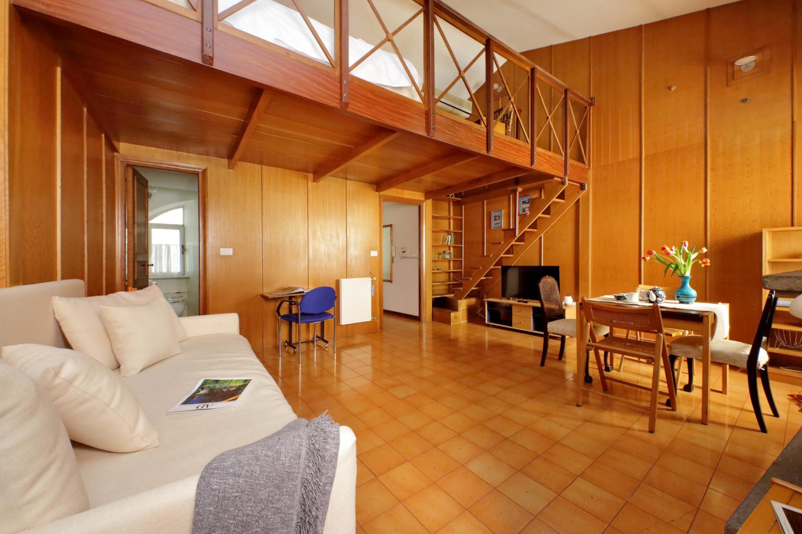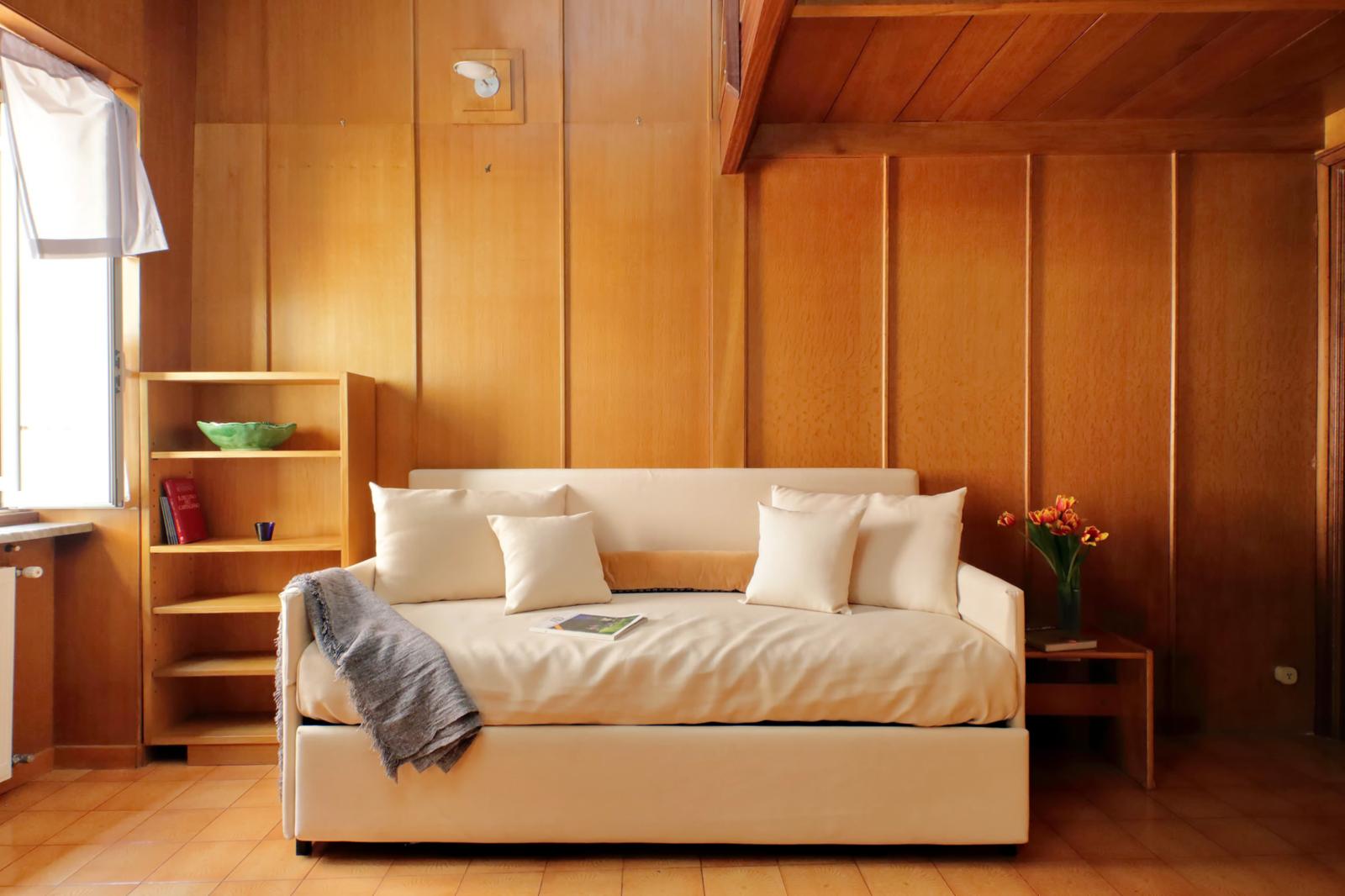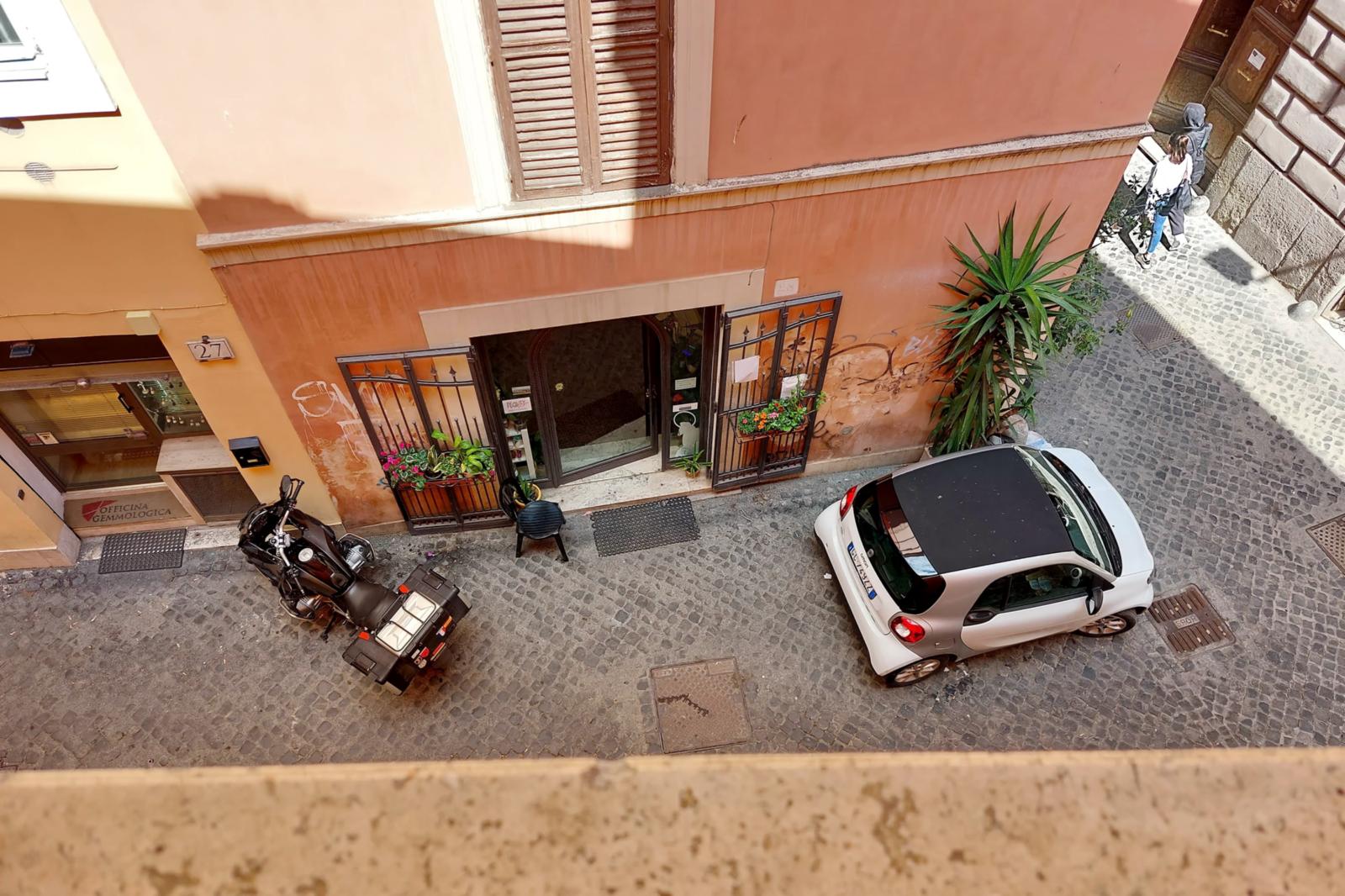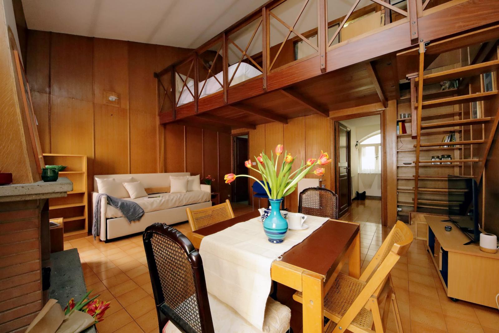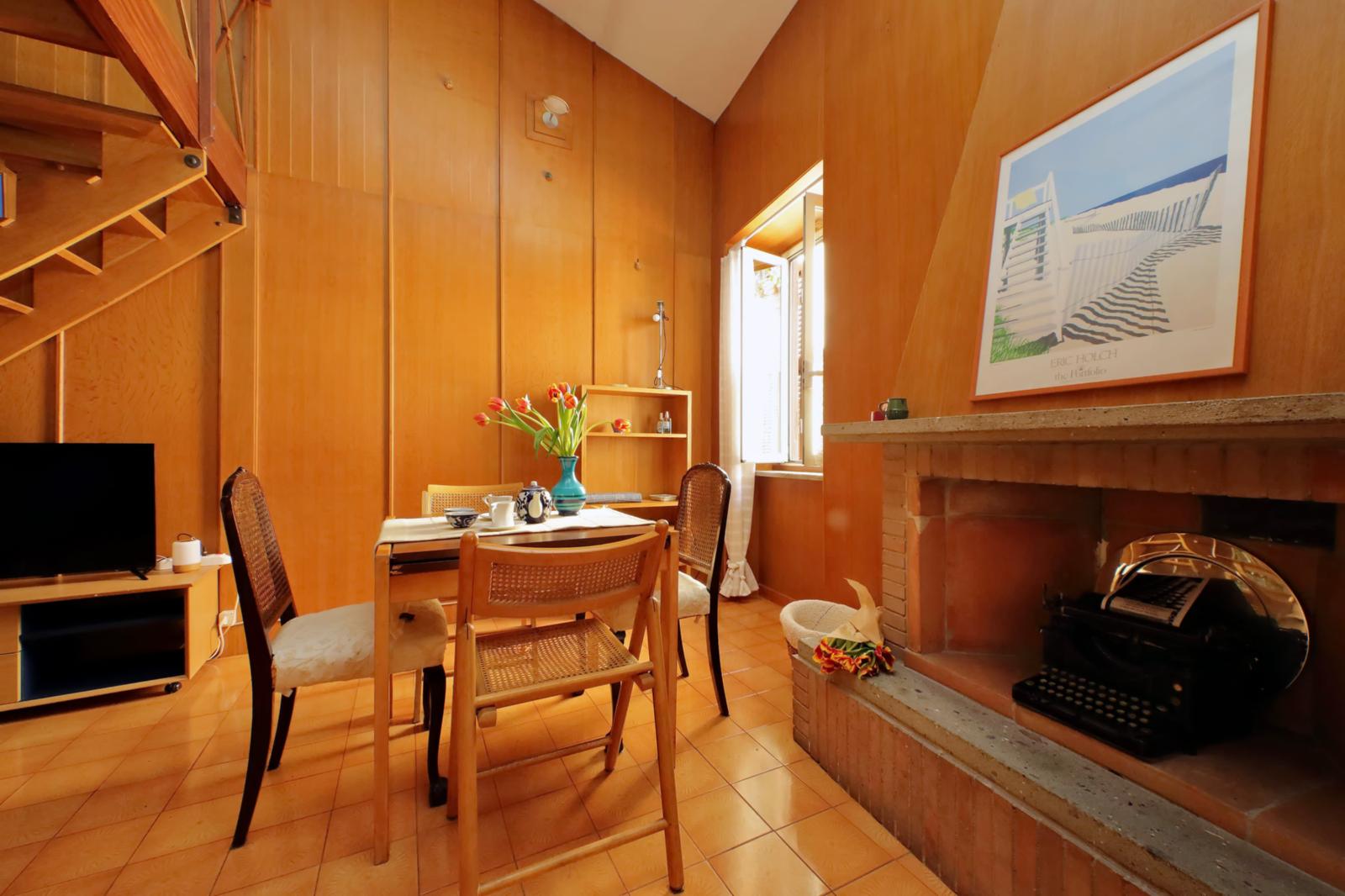 Flatinrome Campodefiori è un confortevole bilocale situato in un tranquillo vicolo nel pieno centro di Roma in una zona molto caratteristica situata tra Piazza Campo de’ Fiori e Piazza Farnese, in una posizione strategica per poter raggiungere a piedi tutti i siti principali (Piazza Navona, Pantheon, Piazza di Spagna, Fontana di Trevi, Castel Sant’Angelo, ecc. ecc). Pur trovandosi in una delle zone più turistiche di Roma, la zona conserva ancora il sapore tipico della Roma tradizionale, con negozi e attività di artigianato locali.L’appartamento si trova al secondo piano di una piccola palazzina di 2 piani ed è composto da un salone ricoperto da pareti in legno con due finestre che affacciano su Vicolo del Giglio, un divano letto (con due letti singoli cm 180 X 80 con veri e confortevoli materassi che possono essere uniti a formare un letto matrimoniale) e un tavolo per 4 persone. L’appartamento dispone di una cucina separata completamente attrezzata e di un bagno con vasca. Una scala conduce al soppalco con accesso riservato, con un letto matrimoniale.Flatinrome Campodefiori è dotato di tutte le comodità: aria condizionata, termosifoni, lavatrice, connessione Wifi con dispositivo portatile che potete portare con voi per avere connessioni anche fuori dall’appartamento, Smart TV con canali Netflix.Come quasi tutti gli edifici tradizionali di Roma, per accedere al piano bisogna salire una rampa di scalini abbastanza ripida (ma per fortuna breve!) che non rende questo appartamento un’opzione valida per persone con mobilità ridotta. Le difficoltà per l’accesso saranno però compensate dal fascino di soggiornare in pieno storico, in una dimora tipica della Roma antica, dove ha vissuto il noto pittore e scrittore spagnolo Ramon Gaia. L’appartamento appartiene ad un giornalista e scrittore che ha lascito qui la sua macchina da scrivere utilizzata nei primi anni di carriera.