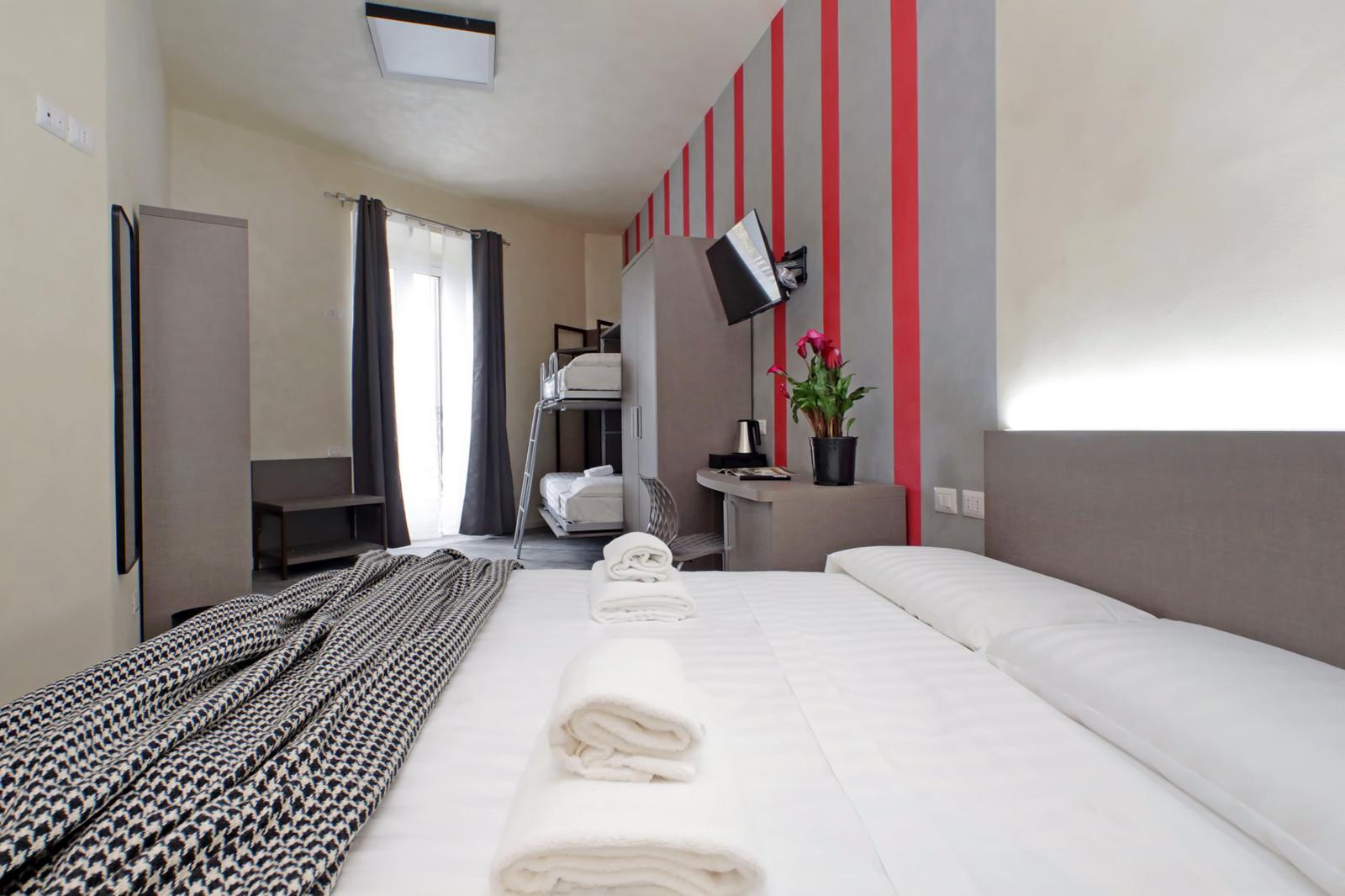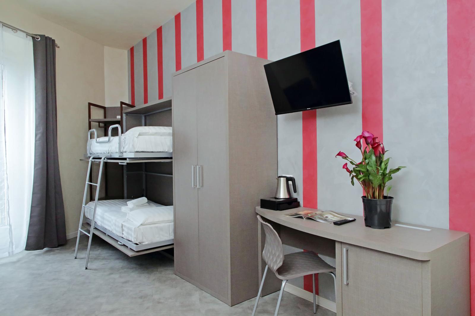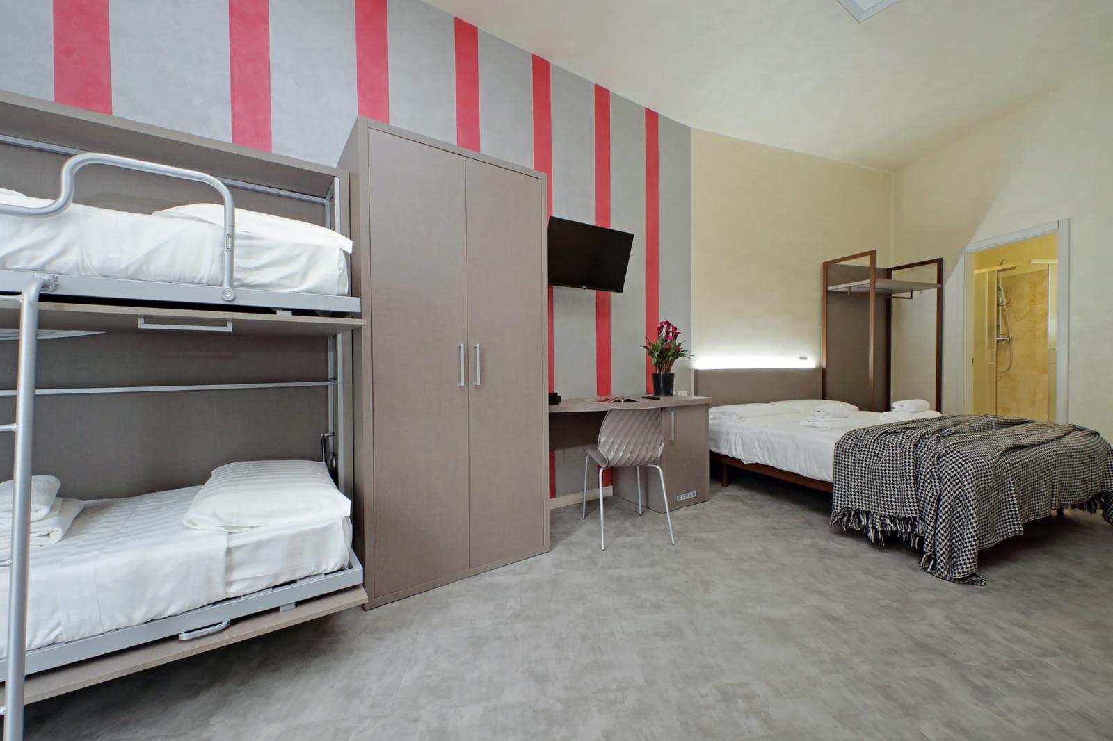 Ampia e luminosa, offre due letti singoli (80x200 cm) unibili a matrimoniale su richiesta, e un letto a castello a ribalta (85x185 cm)