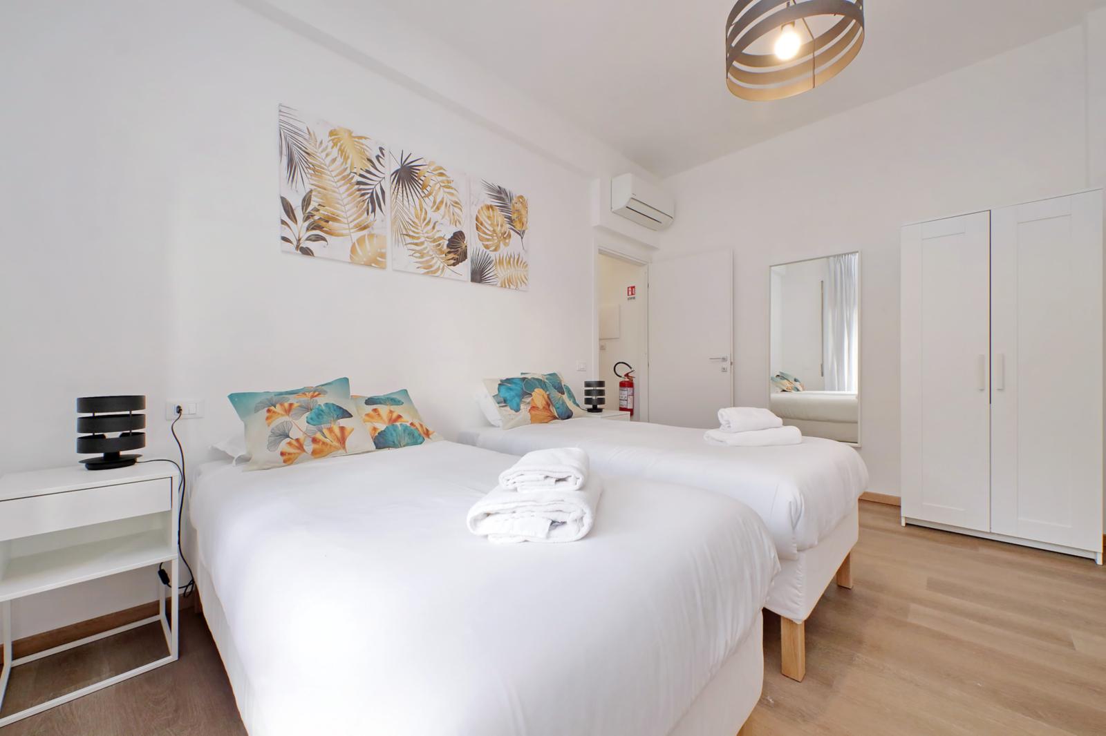 - 2 camere da letto: una doppia (con letti singoli unibili 90x200, che possono essere uniti per formare un matrimoniale) e una tripla (con due letti singoli unibili 90x200 e un letto singolo aggiuntivo 80x200).